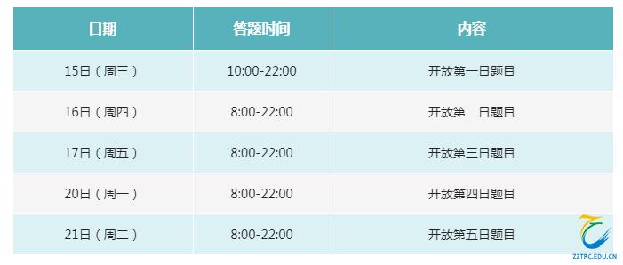 如您15日—17日有1天或以上未答题或未得满分,可在18日(周六)—19日(周日)8:00—22:00补答相应日期的题目。