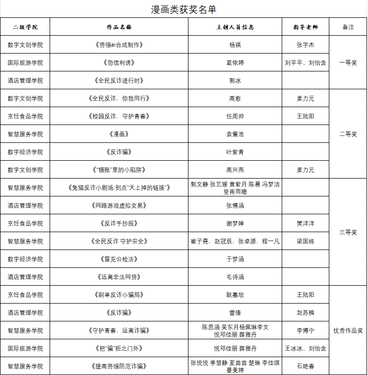 2025年校园反诈宣传暨短视频(漫画)大赛获奖名单公布