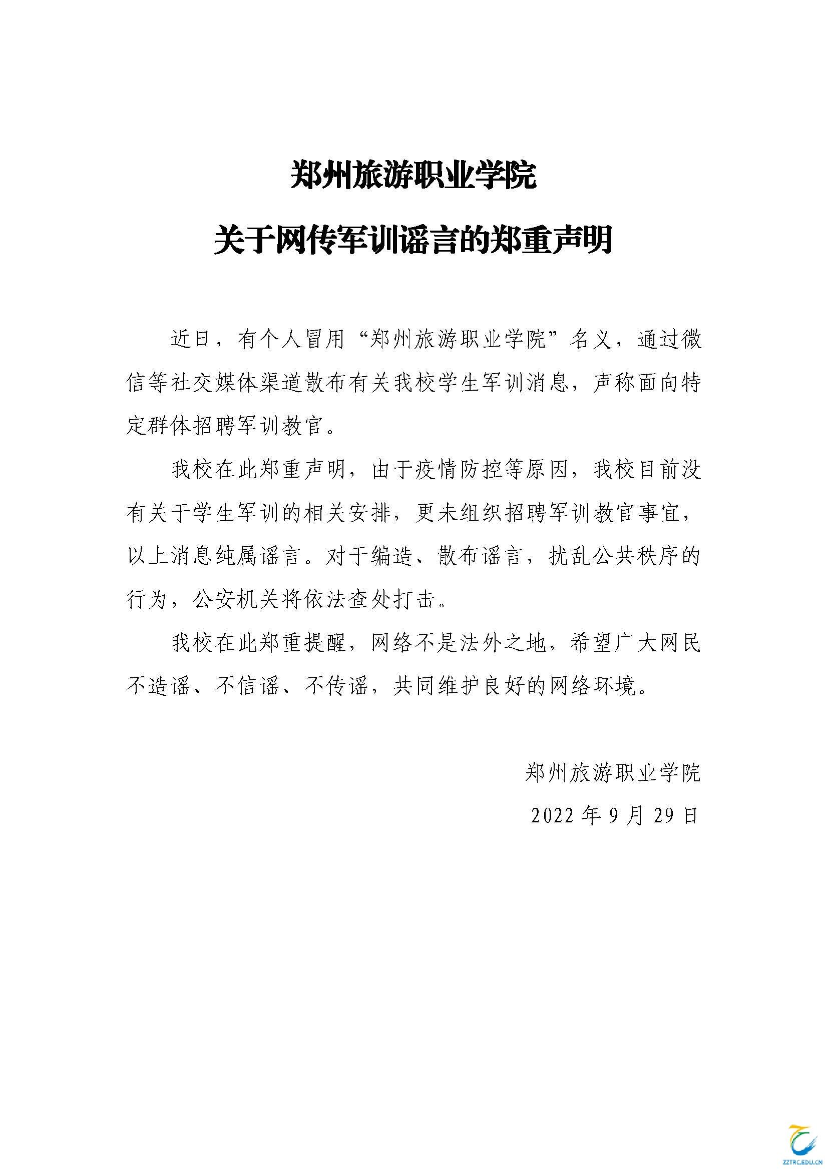 太阳成集团tyc7111cc关于网传军训谣言的郑重声明