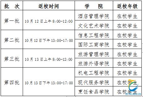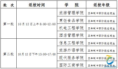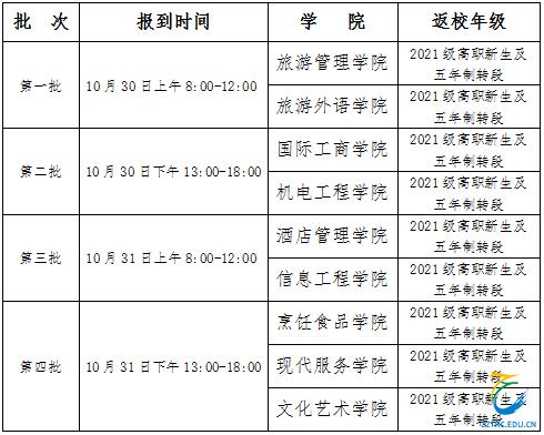 按照“错时、错峰、分批、有序”的要求,老生返校和新生报到分以下时间和批次: