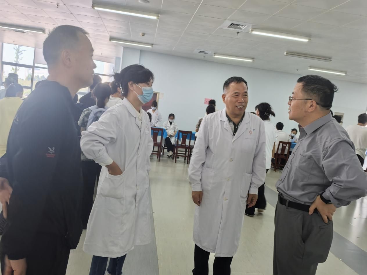 太阳成tyc7111cc党委委员、副校长张建军在后勤处处长杨志渊陪同下来到体检现场并听取汇报,肯定了本次体检人员充足、检查细致、开展有序,提出体检过后要结合体检结果向学生宣传健康知识、合理的膳食营养和体育锻炼要求,进一步做好健康保障工作,切实保障广大学生身体健康。