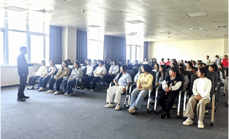 胡志霞代表图书馆向全体新生发出诚挚邀请,鼓励大家常赴“图书馆之约”,把图书馆作为大学学习生活的重要阵地和精神家园。他表示,图书馆将继续以丰富的资源与优质的服务,陪伴每一位同学在知识的海洋中探索与成长。