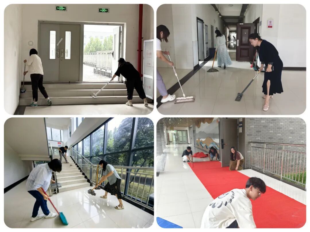 在大扫除现场,全院教职工热情高涨、分工明确,呈现出一派热火朝天的劳动景象。大家手持扫帚、抹布、拖把等工具,对学院教室、办公室、走廊过道、楼梯间、实训室公共区域等进行全方位清洁:有的细致擦拭门窗玻璃与墙面污渍,让环境焕然一新;有的认真清扫地面灰尘与杂物,不放过任何卫生死角;有的合力整理办公与教学物资,确保摆放规范整齐。教职工们相互配合、通力协作,用汗水为师生打造干净舒适的学习工作空间,充分展现了团结奋进、积极向上的团队风貌。