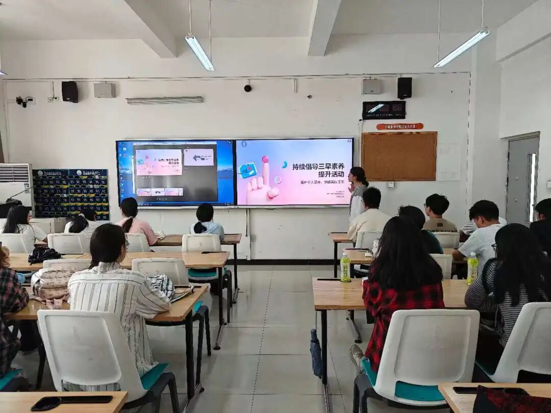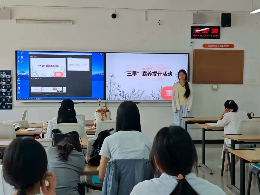 为培养学生积极向上、勤奋自律的精神风貌,班会持续倡导“早起床、早锻炼、早阅读”素养提升活动。要求同学们每天早上7点起床,按照常态化宿舍安全卫生标准整理宿舍内务;提倡学生每天早起参与晨跑、早操等体育锻炼,保持饱满精神状态;鼓励学生养成早起阅读打卡习惯,推动“三早”习惯成为班级文化重要组成部分,助力学生塑造优良生活与学习习惯。