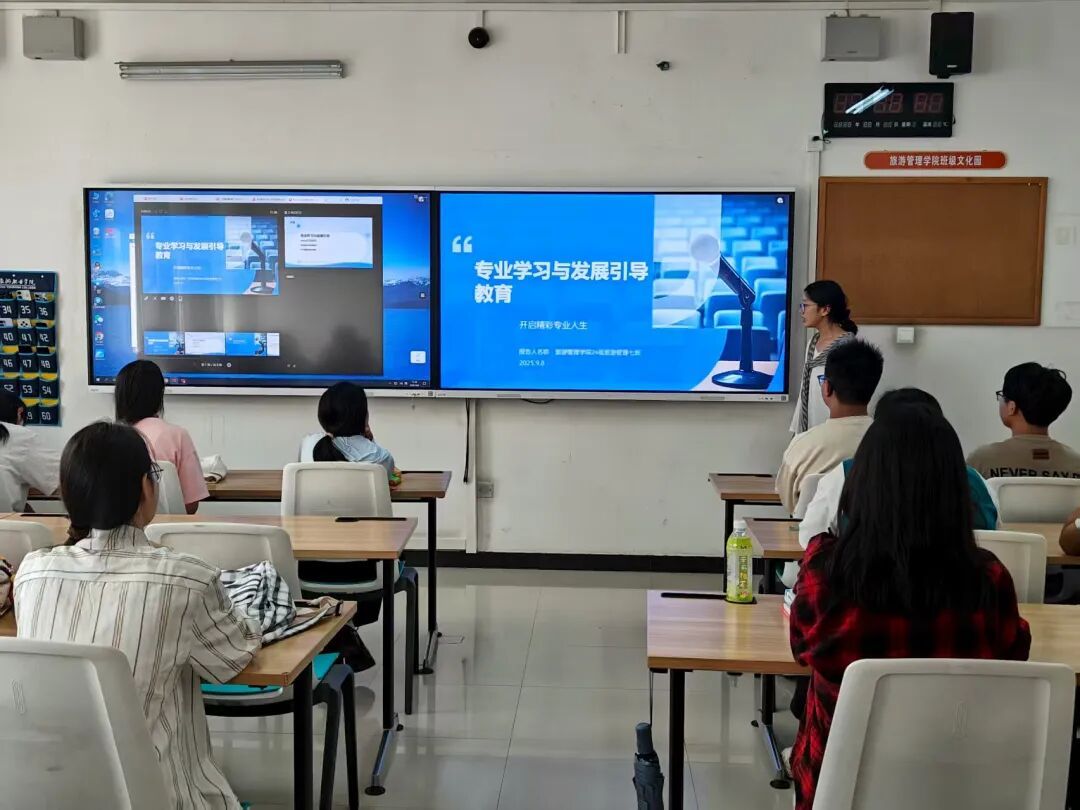 班会回顾上一学年专业学习整体情况,针对学生在课程理解、技能掌握、学习主动性等方面存在的共性及个体问题,逐一进行分析并提出改进建议。班主任结合国家发展战略需求与旅游行业发展趋势,引导学生将专业学习与国家需求相结合,树立符合行业发展方向的职业理想,明确本阶段专业学习重点,为后续职业发展筑牢专业基础。