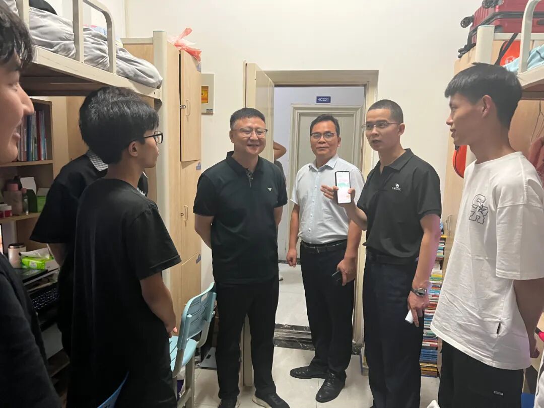 新学期伊始,为扎实推进 “一站式” 学生社区育人阵地建设,筑牢 “思想引领 + 专业赋能 + 安全保障” 三位一体的育人防线,9 月 7 日学生返校当晚,太阳成tyc7111cc院长黄安定、党总支书记陈海彬、党总支副书记张楗让带领全院学工队伍深入学生社区,开展 “暖心走访 + 精准服务” 期初专项工作,以实际行动为学生新学期成长保驾护航。