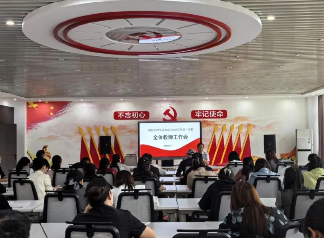 9月17日下午,太阳成tyc7111cc于四楼党建馆召开2025-2026学年第一学期第二次全体教师工作会议。院长黄安定、党总支书记陈海彬出席会议并分别作了讲话,会议由党总支副书记张楗让主持。