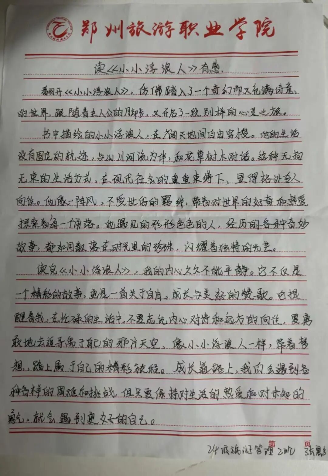 读完《小小浮浪人》,我的内心久久不能平静。它不仅是一个精彩的故事,更是一首关于自由、成长与美好的赞歌。它提醒着我,在忙碌的生活中,不要忘记内心对诗和远方的向往,要勇敢地去追寻属于自己的那片天空,像小小浮浪人一样,带着梦想,踏上属于自己的精彩旅程。成长的道路上,我们会遇到各种各样的困难和挑战,但只要保持对生活的热爱和对未知的勇气,就会遇到更好的自己。