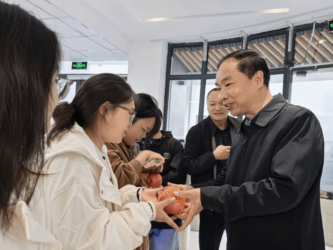领导们亲手将象征着团圆与平安的月饼和苹果递到每一位学生手中。香甜的月饼承载着学校大家庭的温暖情谊,红润的苹果寄托着对学子们平安顺遂的美好祝愿。同学们喜悦地接过礼物,对校院领导的深切关怀表示感谢。2024级一名学生激动地说:“本以为这个中秋节会有些孤单,但校长和院长的到来让我们感到特别惊喜和温暖。学校的关怀无微不至,我们一定不辜负期望,努力学习,用实际行动回报这份关爱。”