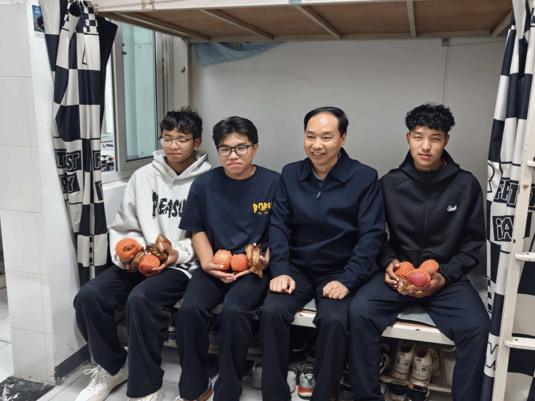走访慰问期间,一站式社区内洋溢着温馨喜庆的节日气氛。肖世才校长与同学们进行了亲切交谈,详细询问了大家在校的学习生活情况、假期安排以及未来的职业规划。“家乡是哪里的?”“在学校生活还习惯吗?”“学习上有没有什么困难?”一句句关切的问候,拉近了师生之间的距离。肖校长鼓励大家要充分利用在校时光,夯实专业基础,提升综合素养,为将来投身文旅产业、服务社会发展做好充分准备。他还特别叮嘱同学们,虽身在校园,也要记得给家人打个电话、通个视频,传递思念与祝福,共享“云上团圆”